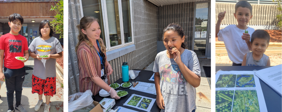 In addition to sampling the peas, children and adults learned about the different types of peas, how they grow, and why we should eat them. Recipe cards created by SDSU Extension that featured peas as an ingredient were available for families to take home.