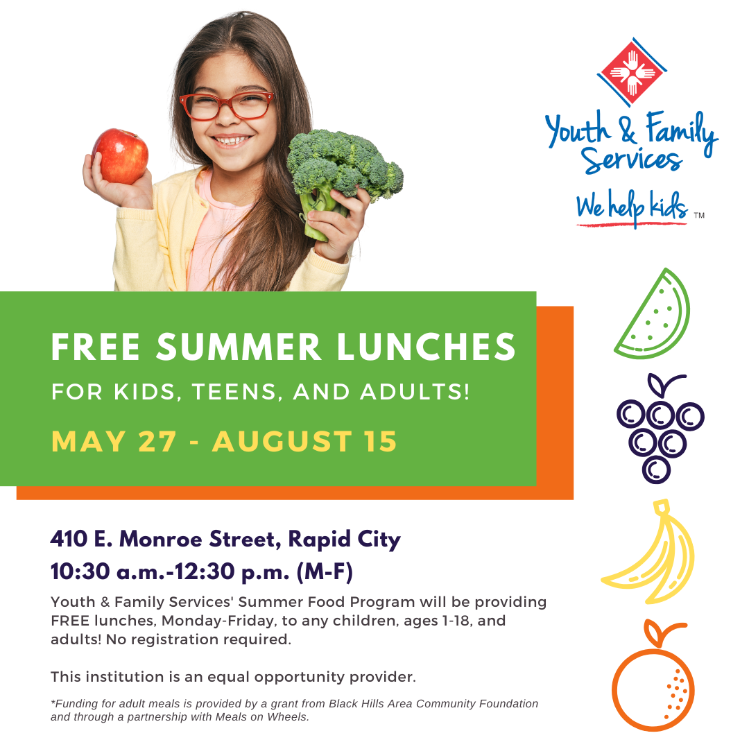 YFS sponsors the program in 31 western South Dakota counties. Any registered/licensed family or group family child care provider may participate. The Family Child Care Nutrition Program is funded by the United States Department of Agriculture’s (USDA) Child & Adult Care Food Program. YFS has been a sponsor of the Family Child Care Food Program since 1984. To contact YFS' Family Child Care Nutrition Program, please call (605) 341-7205.