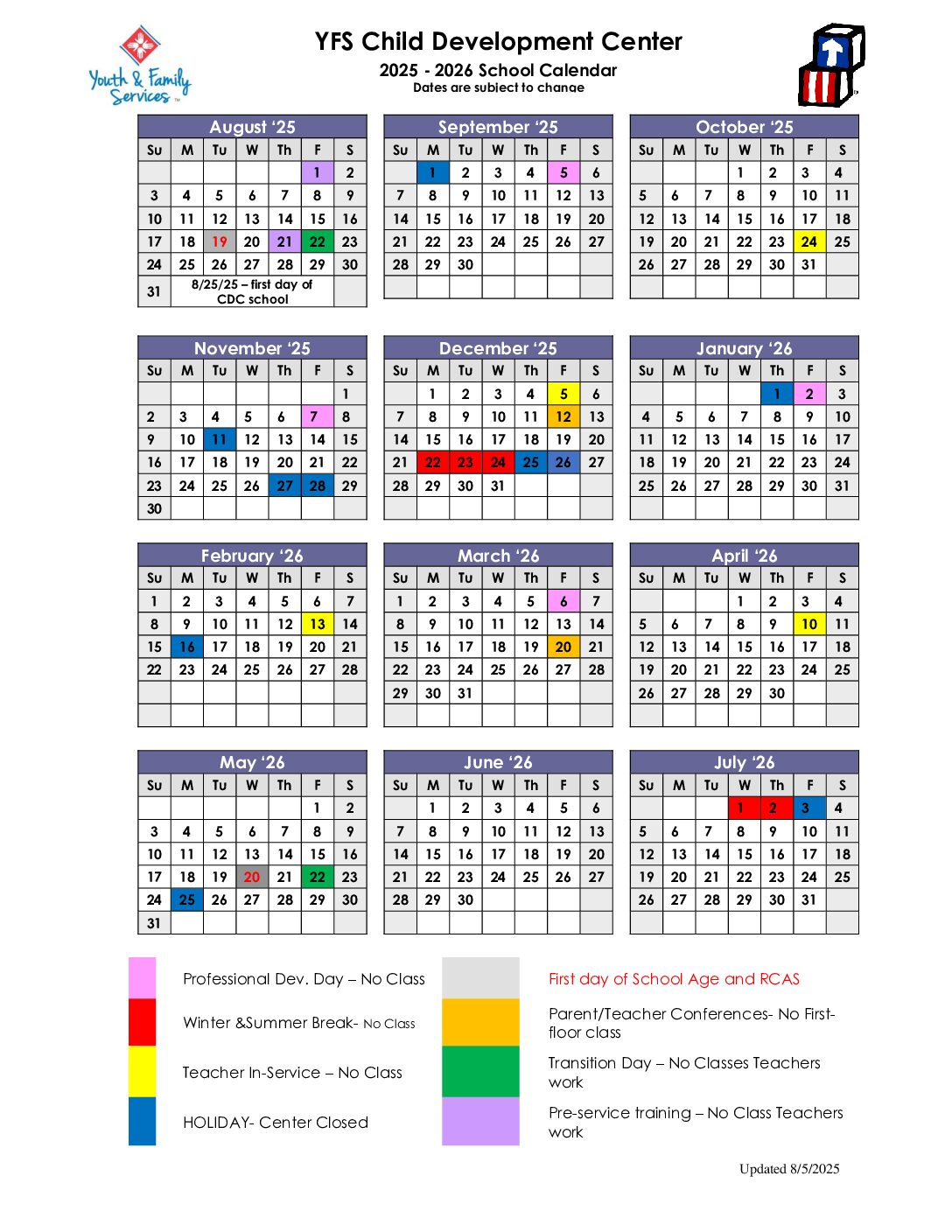 YFS' Child Development Center accepts families who receive Child Care Assistance benefits through the South Dakota Department of Child Care Services.